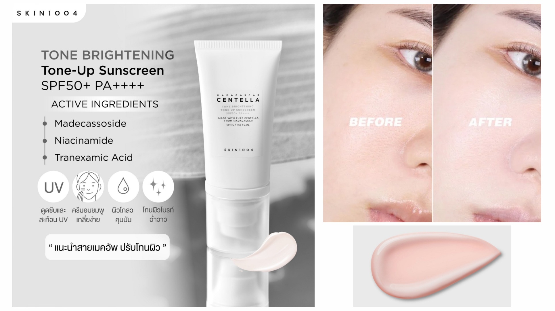 کرم ضد آفتاب ضد لک و روشن کننده مدل تون آپ سنتلا اسکین 1004 SKIN